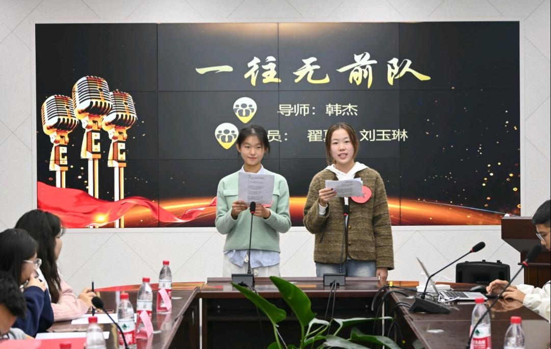 随后,学生会主席团代表李怡薇同学和2024级辅导员朴博文老师进行总结发言,他们不仅表达了对六位选手的祝贺,还向现场所有观众送去了鼓励与祝福,希望学院同学都能保持热爱,勇敢地奔赴自己所向往的领域。