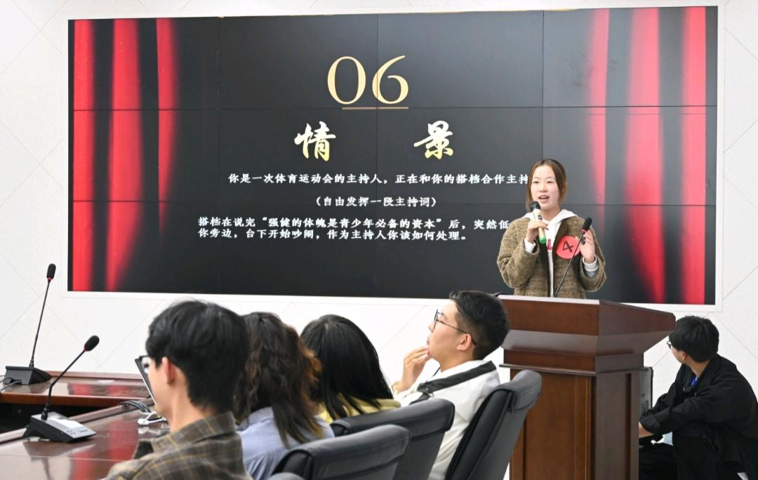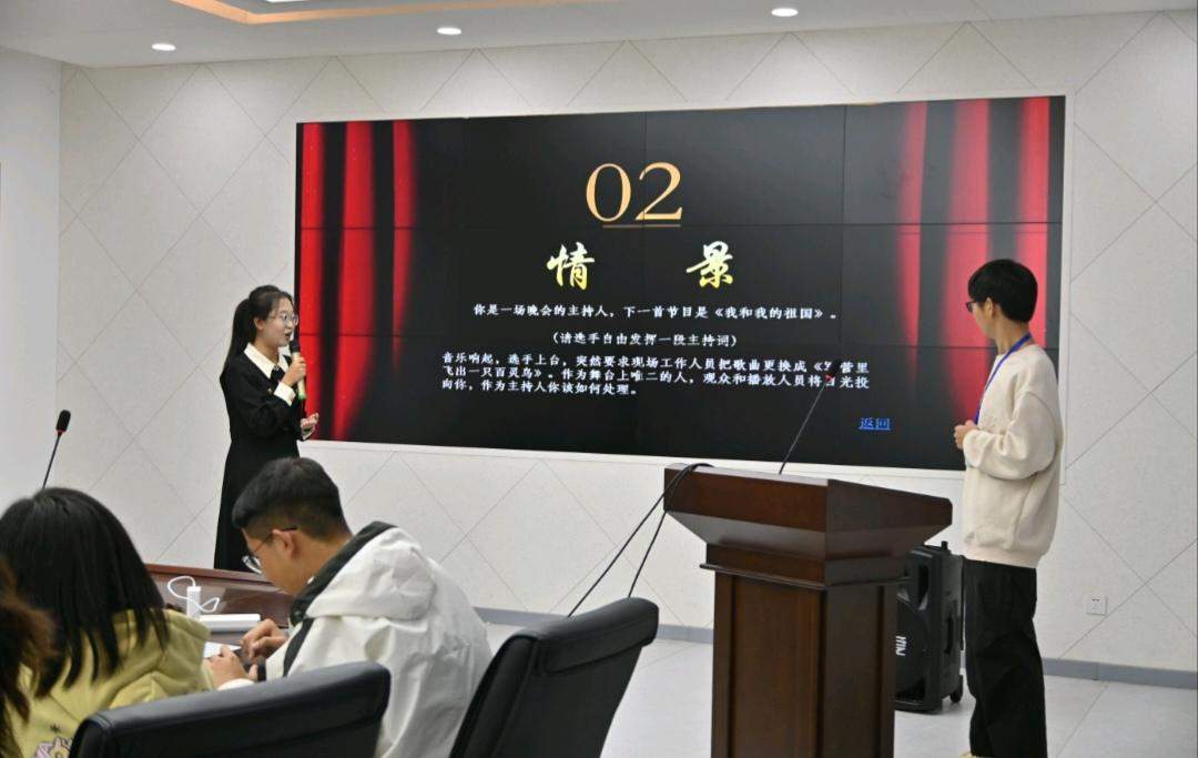 参赛选手们根据现场提供的主持词,表达出自己的观点,逻辑缜密,思维活跃。这个环节有评委老师们坐镇,全面分析选手们的台上表现,为他们提供了宝贵的意见。精彩的赛制,将全方位考验了参赛选手们的的主持能力、应变能力和语言魅力。