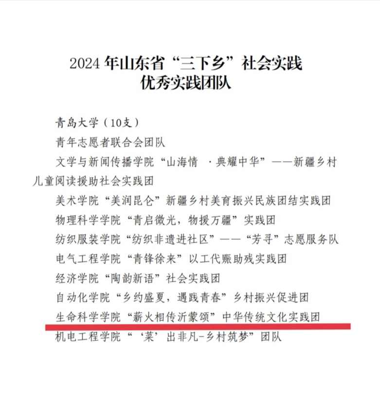 近日,中共山东省委宣传部、山东省教育厅、共青团山东省委、山东省学生联合会联合发布《关于"调研山东"——2024年山东省大中专学生志愿者暑期"三下乡"社会实践活动的通报》,通报表扬了在2024年暑期“三下乡”社会实践活动中表现突出的优秀集体、个人和项目。威廉希尔(WilliamHill)"薪火相传沂蒙颂"三下乡实践服务队在临沂市开展的红色文化传承实践活动荣获"优秀实践团队" " 优秀指导老师" "优秀学生 "称号!