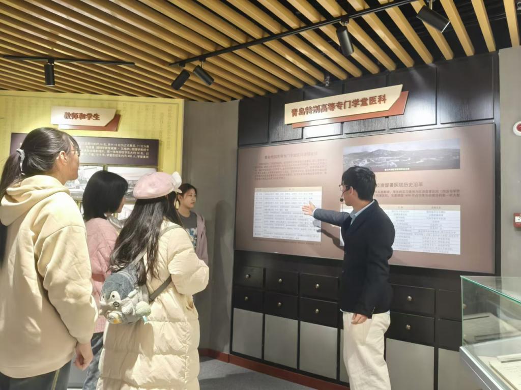 校史馆内首先映入眼帘的是那些生动传神的铜质浮雕,它们承载着山海精神,生动地展现了青岛大学自成立以来的辉煌成就。 “百年沧桑,岁月如歌”,从早期学府的萌芽破土,到合并组建后的砥砺深耕,再到学科建设的累累硕果,名师大家的风范轶事,校园文化的沉淀积累,青岛大学的历史脉络缓缓展开。“承百年薪火,立青春之志”,置身校史馆中,体悟时间的流逝,感叹历史的厚重,与前辈隔空对话,不由得更加坚定了同学们作为青年人的崇高信念使命担当。