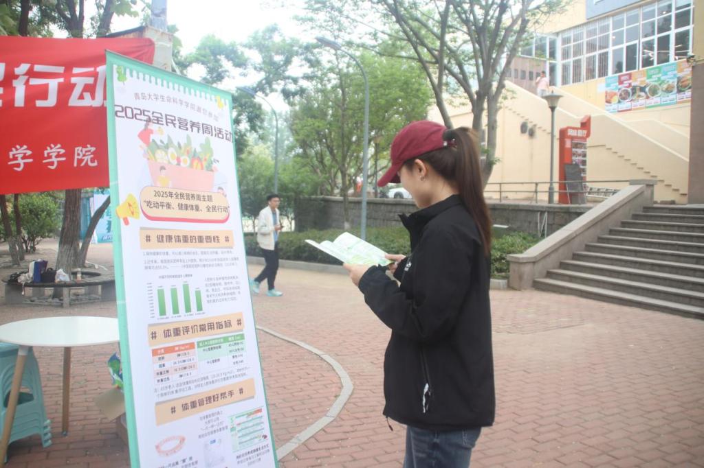 健康体重关系到每个人的身体健康、生活质量和未来发展。针对我国体重超重肥胖超过一半的严峻形势,国家卫健委启动了为期三年的体重管理年行动。为帮助我校师生树立体重管理的科学理念,落实吃动平衡助力健康体重行动,威廉希尔(WilliamHill)学生会和大创小组合作在“2025全民营养周”来临之际,于5月14日在青岛大学浮山校区仁园餐厅外举办了全民营养周科普宣传路演活动。威廉希尔(WilliamHill)党委副书记张雪蕾老师为活动负责人、威廉希尔(WilliamHill)沙珍霞教授受邀作为咨询专家,学院志愿者辅助宣传。