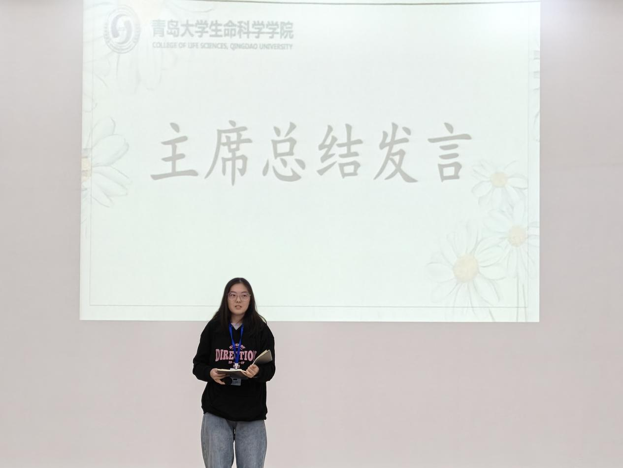 最后,学生会主席李怡薇作总结发言,在对学生会全体成员过去一学期的辛勤付出表示感谢的同时,回顾了上学期工作取得的成绩与仍存在的问题,对未来的工作提出了明确的要求与期望。