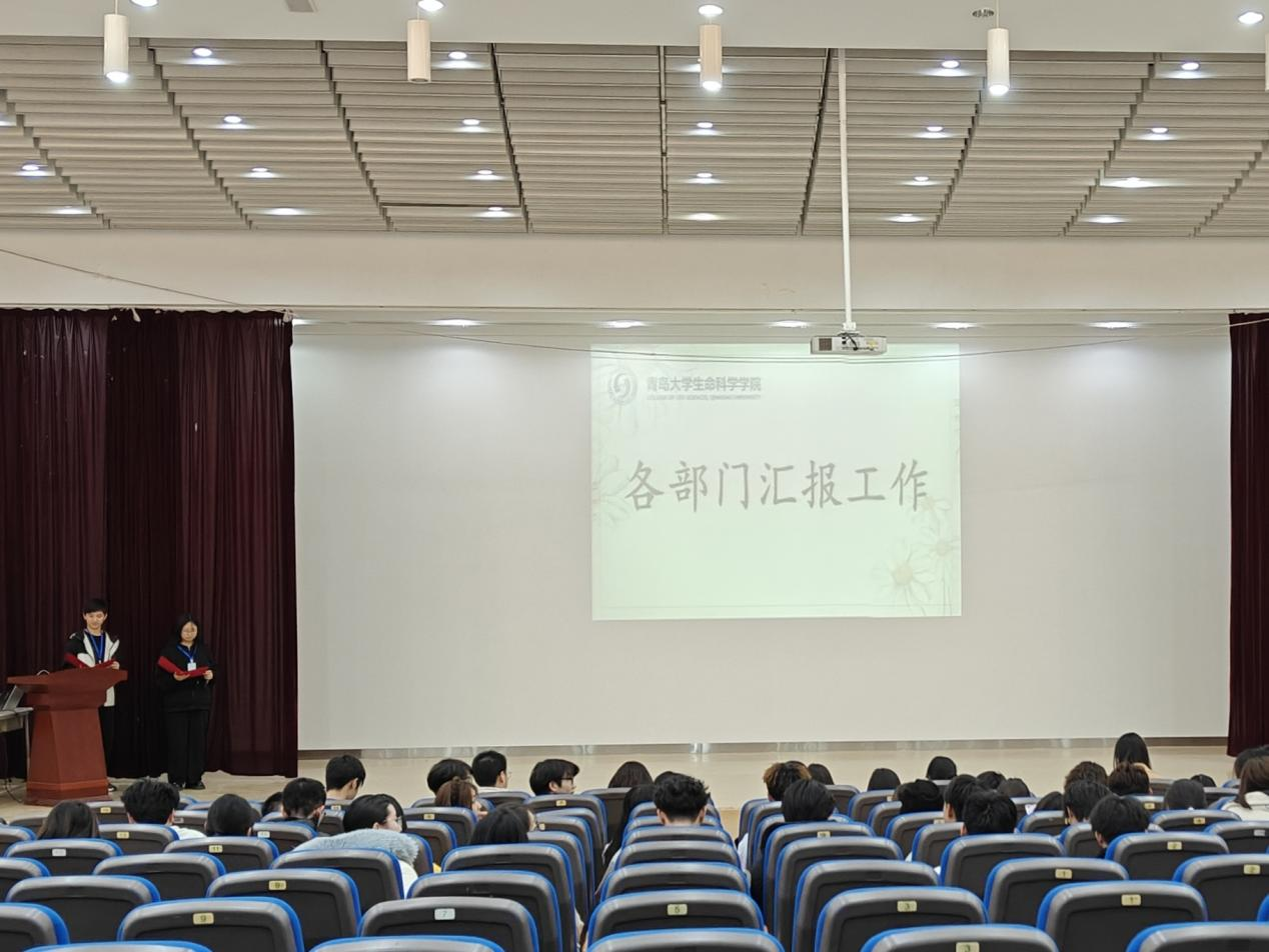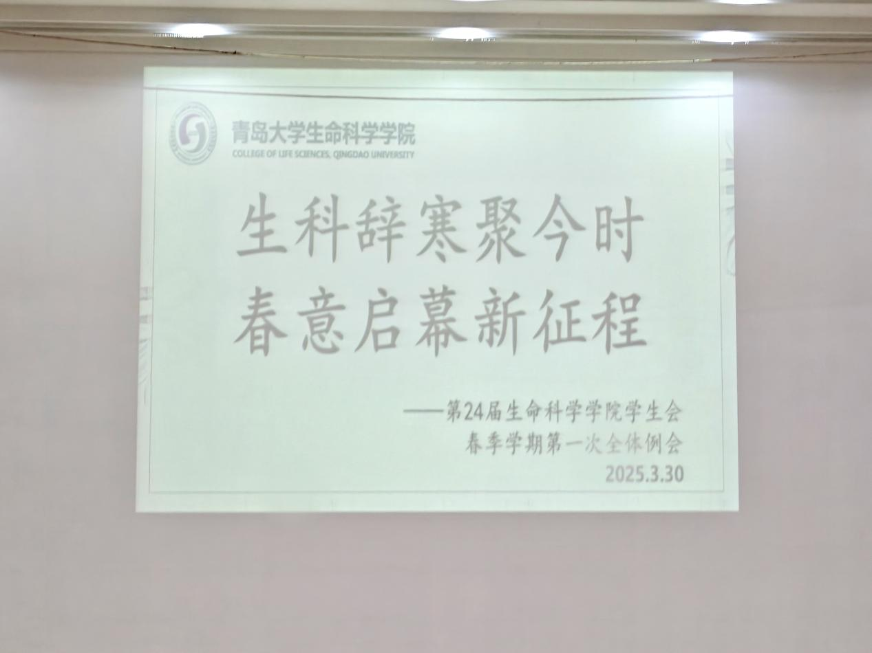 为总结过去,表彰先进,增强交流合作,推动学院学生会新学期的工作。威廉希尔(WilliamHill)学生会于330日在金家岭校区图文中心四楼报告厅召开“生科辞寒聚今时,春意启幕新征程”2025年春季学期第一次全体例会,会议由学生会志愿者王恒真和龙礼静主持。