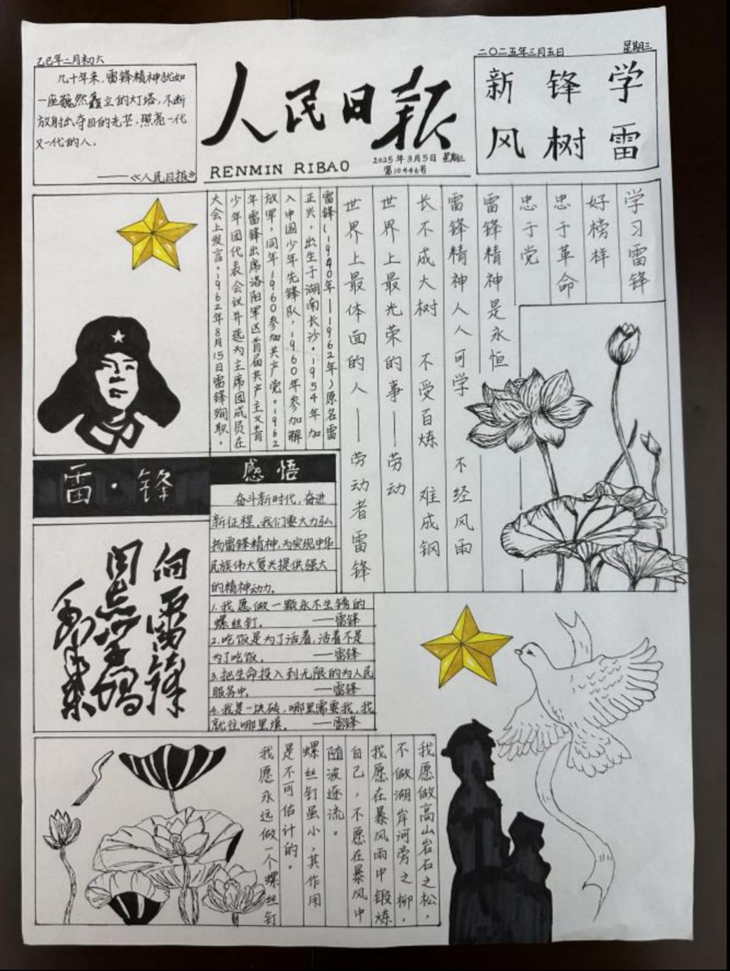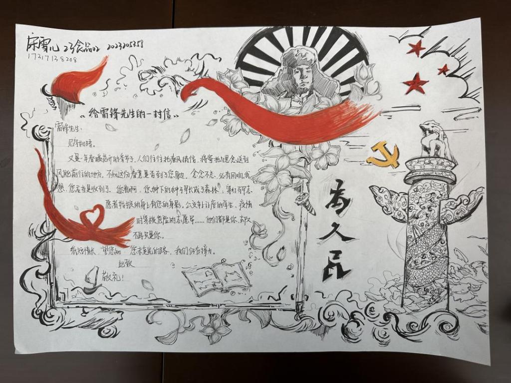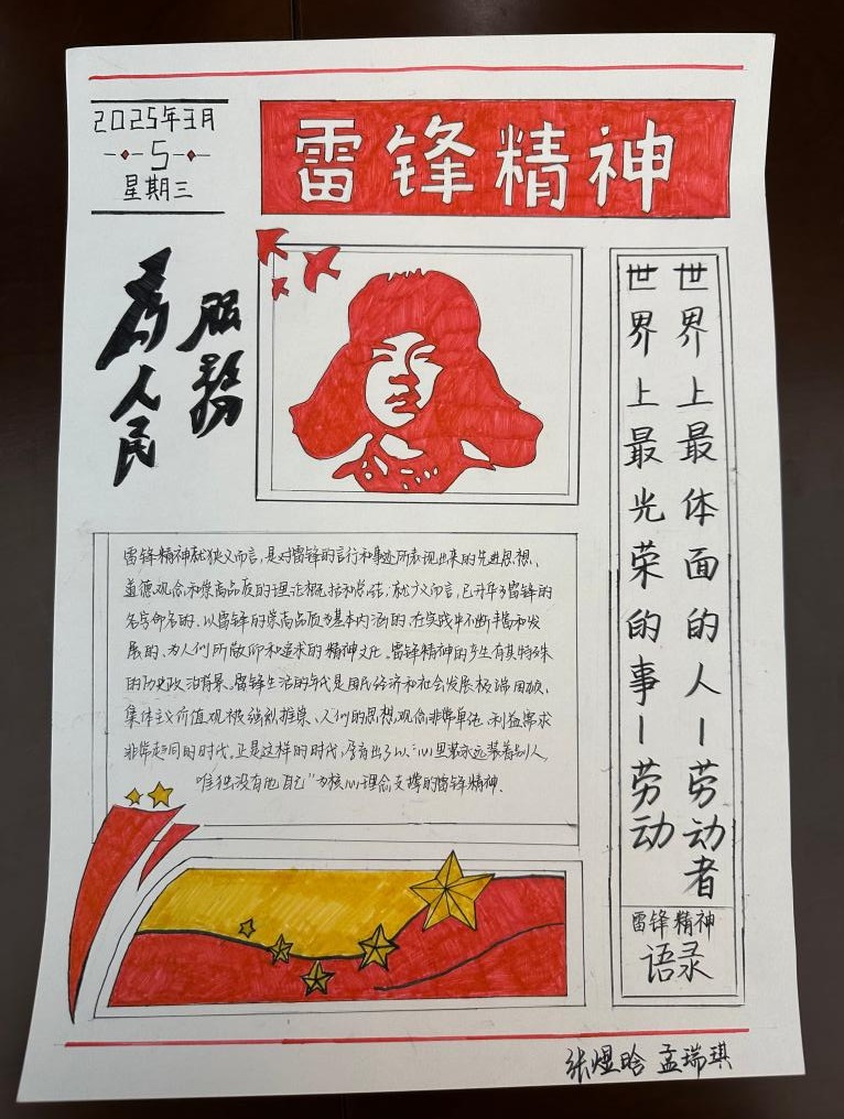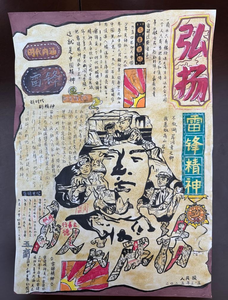 雷锋精神作为中华民族宝贵的精神财富,激励着一代又一代人为构建美好社会而不懈努力。为弘扬雷锋精神,传承中华美德,培养学院学生的道德情操和社会责任感,2025年3月,威廉希尔(WilliamHill)开展了“笔绘雷锋光影,力践时代担当”手抄报制作活动。