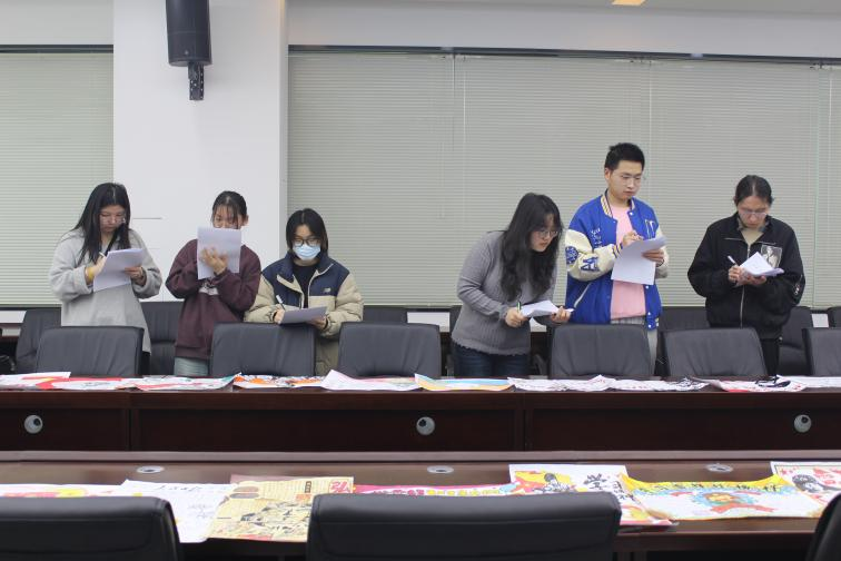 4月1日,学院团委副书记马国成,学工办副主任朴博文、以及八名党员代表在博雅楼113会议室对全院51份作品进行了评审打分。