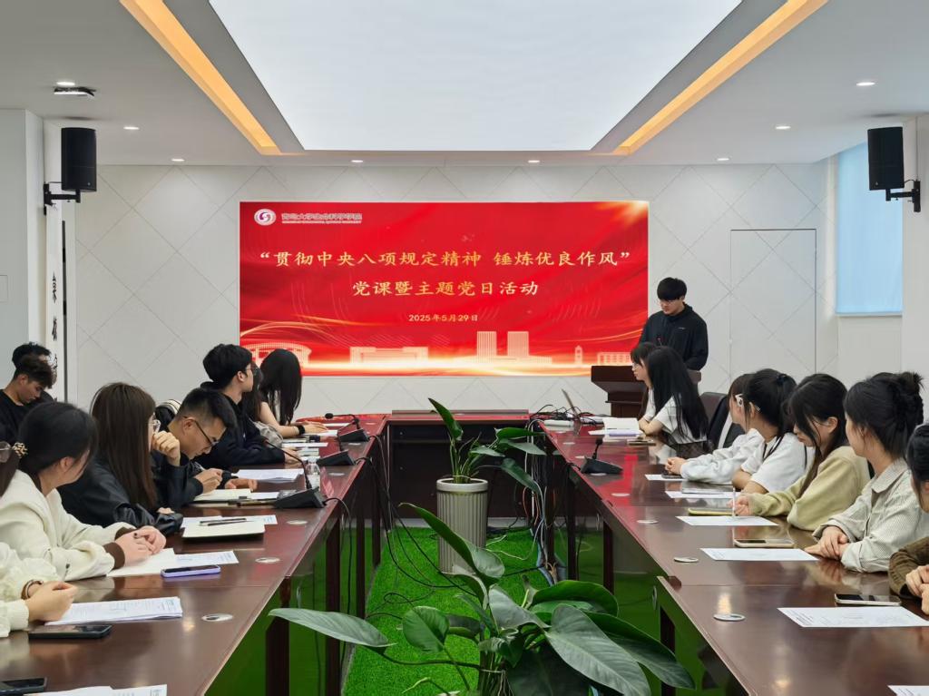 为深入贯彻中央八项规定精神学习教育, 2025年5月29日,威廉希尔(WilliamHill)学生第一党支部和第二党支部联合组织开展了“贯彻中央八项规定精神 锤炼优良作风”党课暨主题党日活动。此次活动引导全体党员深刻领会中央八项规定精神,切实增强在新时代新征程中展现党员担当的自觉性和主动性。活动由学生第二党支部书记朴博文主持,全体学生党员积极参与,现场学习氛围浓厚。